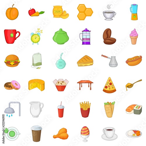 Breakfast icons set. Cartoon style of 36 breakfast vector icons for web isolated on white background
