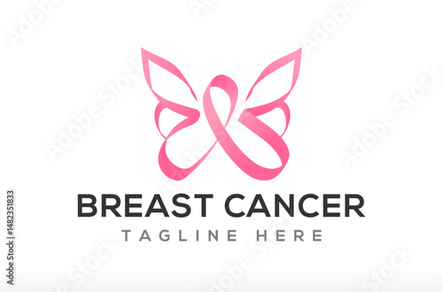 Breast Cancer Women Butterfly Logo Design, cancer logo icon with butterfly, women butterfly and cancer awareness campaign icon badge, pink color logo Vector Icon Symbol Silhouette social brand