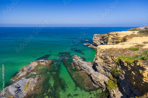 Breathtaking coastal landscape showing cliffs and turquoise waters in Odemira, Portugal