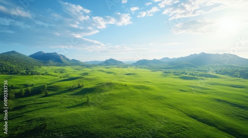 Breathtaking nature landscape rolling green hills aerial view serene environment vibrant scenery