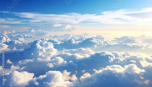 Breathtaking sky and cloudscape view from airplane window, an aerial journey above the horizon