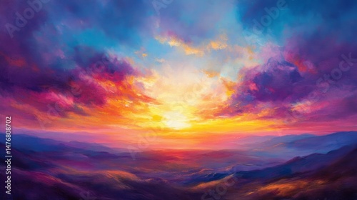 Breathtaking Sunset Canvas with Vibrant Hues in the Sky
