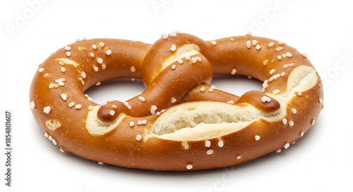 Bretzel traditionnel dor� genereusement sale mis en valeur par un eclairage studio eclatant sur fond blanc pur. AI Generated