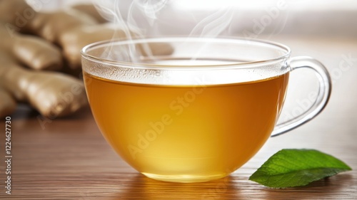 Brewing fresh ginger tea cozy kitchen beverage photography warm atmosphere close-up wellness concept