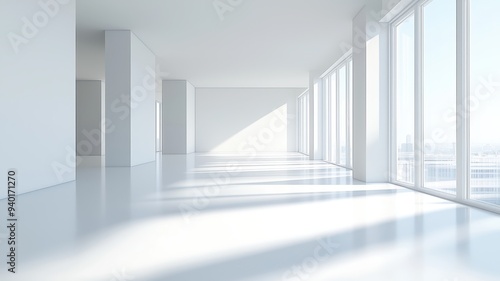Bright and airy modern interior space with large windows, ideal for design, architecture, or real estate concepts.