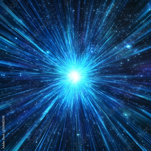 Bright Blue Burst of Light with Radiating Energy and Stars in Galaxy