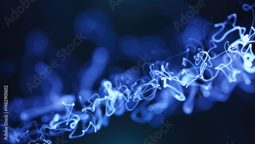 Bright blue glowing light trails swirling and flowing dynamically in a dark, futuristic design backdrop