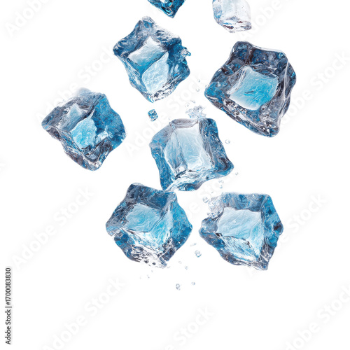 Bright blue ice cubes are arranged on a clean surface, adding a cool touch perfect for beverages or summer treats