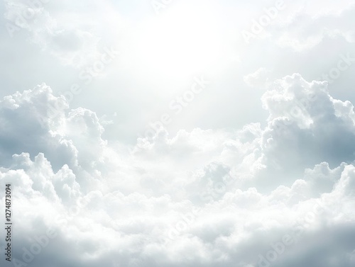 Bright Clouds Sky panorama with fluffy clouds with sun shining through for religious themes