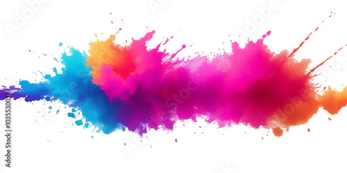 Bright colorful watercolor splash splatter stain brush strokes on white background. Modern vibrant aquarelle spot. Aquarelle explosion on white. Element. Vector watercolor illustration isolated design