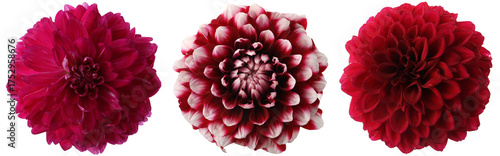 Bright dahlia flowers isolated on white, set