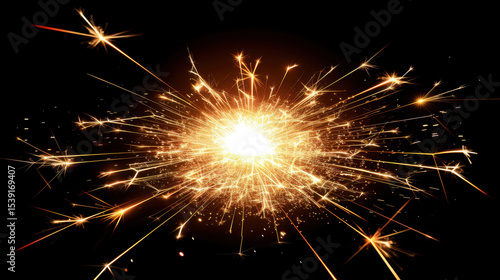 Bright golden spark trails burst into dazzling display, fading into darkness, creating mesmerizing visual effect