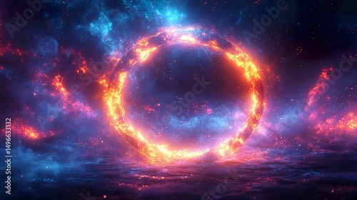 Bright holographic circle element with starburst glow and futuristic energy aura