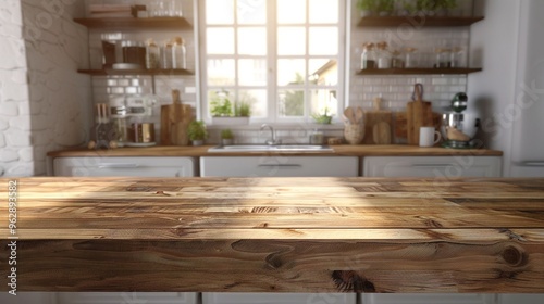 bright kitchen interior background with empty table