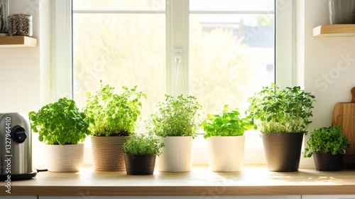 Bright kitchen with windowsill herb garden