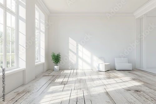 Bright living room interior with white empty wall