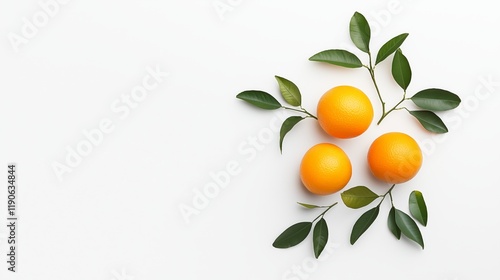 Bright oranges arranged with fresh green leaves on a clean surface for a vibrant display