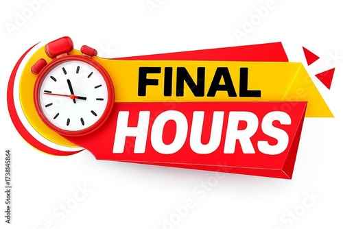 Bright red and yellow banner with a clock indicating final hours and a sense of urgency for a sale or event