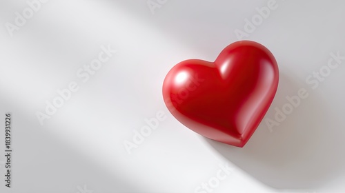Bright Red Heart Shape on White Background with Soft Shadows and Glossy Finish Ideal for Love Themes, Romance Concepts, and Emotional Expressions in Stock Imagery