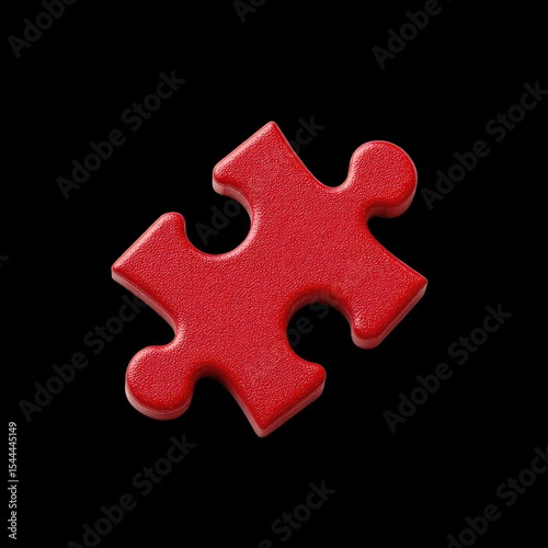 Bright red jigsaw puzzle piece isolated on black background, showcasing its smooth texture and unique shape, perfect for representing problem solving and creativity