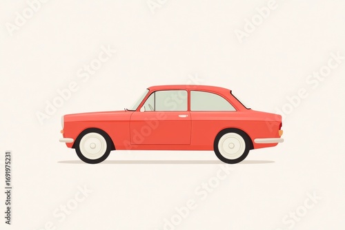 Bright red vintage car illustration for kids and toys concept design