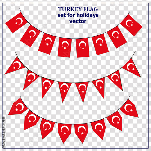 Bright set with flags of Turkey. Happy Turkey day flags. Colorful collection with flag. Vector illustration with transparent background.