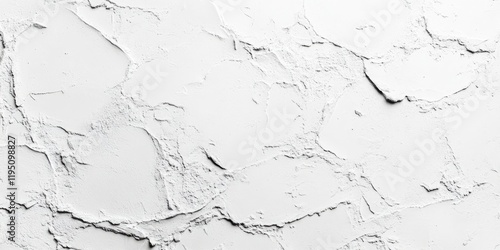 Bright white uneven stucco wall with chaotic plaster texture features intricate patterns and ample copy space in the top left for design use