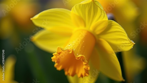 Bright Yellow Daffodil Flower Close-Up with Green Background