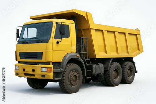 Bright yellow dump truck on a clean background.
