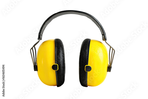 Bright yellow earmuffs, black accents