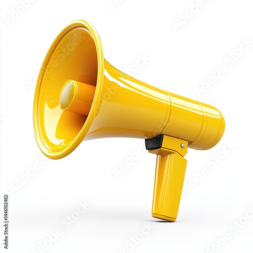 Bright Yellow Megaphone on White Background