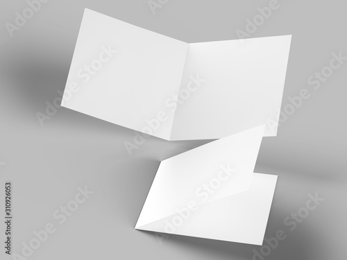 Brochure in square format folded to two - mockup. 3d illustration