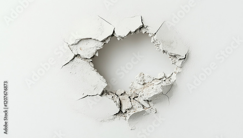Broken wall with a hole, white background