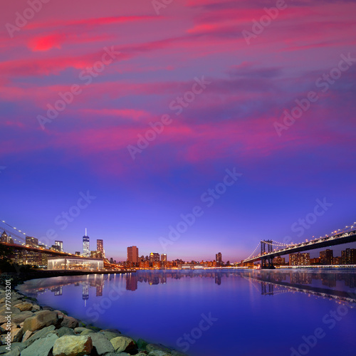 Brooklyn Bridge and Manhattan bridges sunset NY