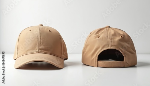 Brown baseball cap mockup. Front and back views on white background. Blank cap design for logo, branding. Cap accessory for sport, fashion, casual wear. Headwear clothing item.
