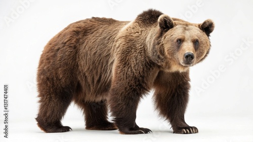 brown bear in full view on white studio background