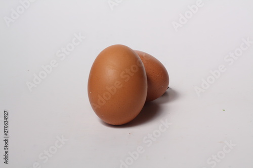 Brown chicken egg on white background