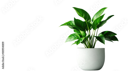Brown earthen flower pot with green plant isolated on PNG file with transparent background