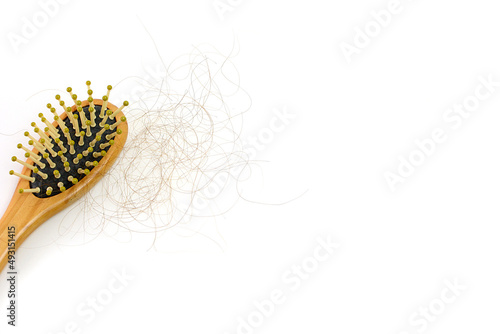Brown hair, hair loss every day, serious problems and hair loss on a white background.