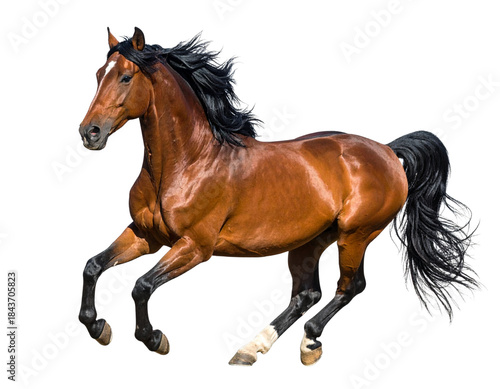Brown Horse Galloping at Slight Angle, Isolated PNG