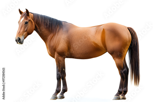 Brown horse standing isolated on white background