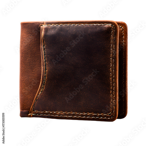 Brown Leather Wallet, stylish handcrafted leather accessory, white isolated background