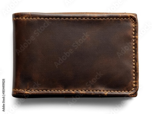 Brown leather wallet with stitched edges on a white background