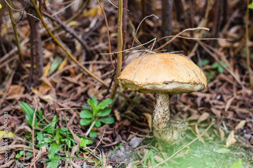 Brown mushroom in autumn forest