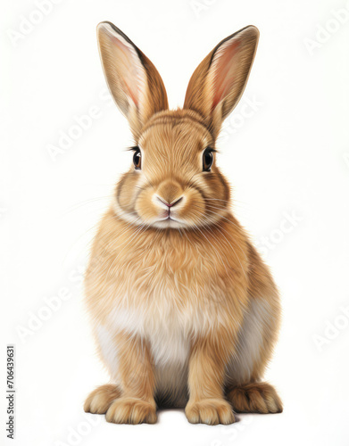 Brown Rabbit Sitting on White Floor - Adorable Domestic Pet Animal Picture