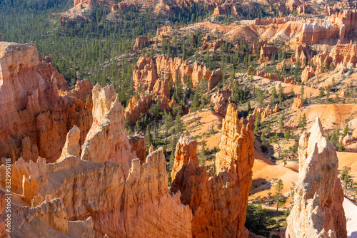 Bryce Canyon National Park is known for crimson-colored hoodoos, which are spire-shaped rock formations.