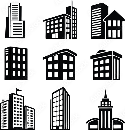 Buildings different icons set. Vector illustration