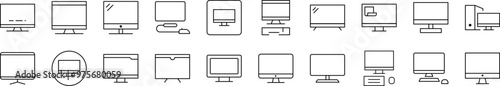Bundle of Line Icons of Computer. Editable Stroke. Minimalistic Linear Pictogram for Design of Cards, Apps, Banners, Posts