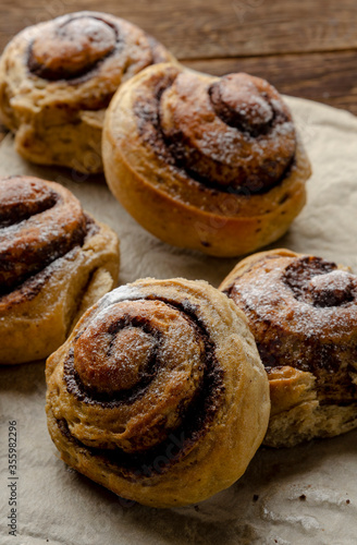 buns made from banana dough with chocolate and cinnamon. Delicious