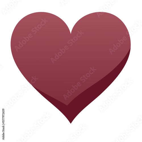 Burgundy 3D heart symbol isolated on white, love and affection graphic